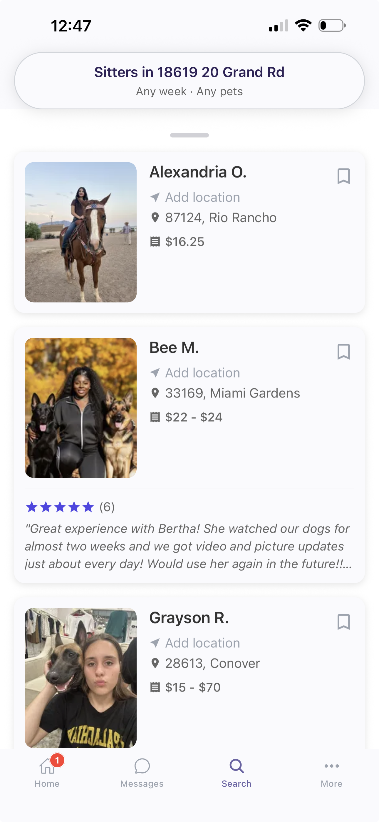 Chatea con el cuidador para confirmar los detalles y, si es necesario, reúnete en persona antes de reservar. Puedes esperar la respuesta del cuidador o llamarlo directamente después de enviarle un mensaje.
